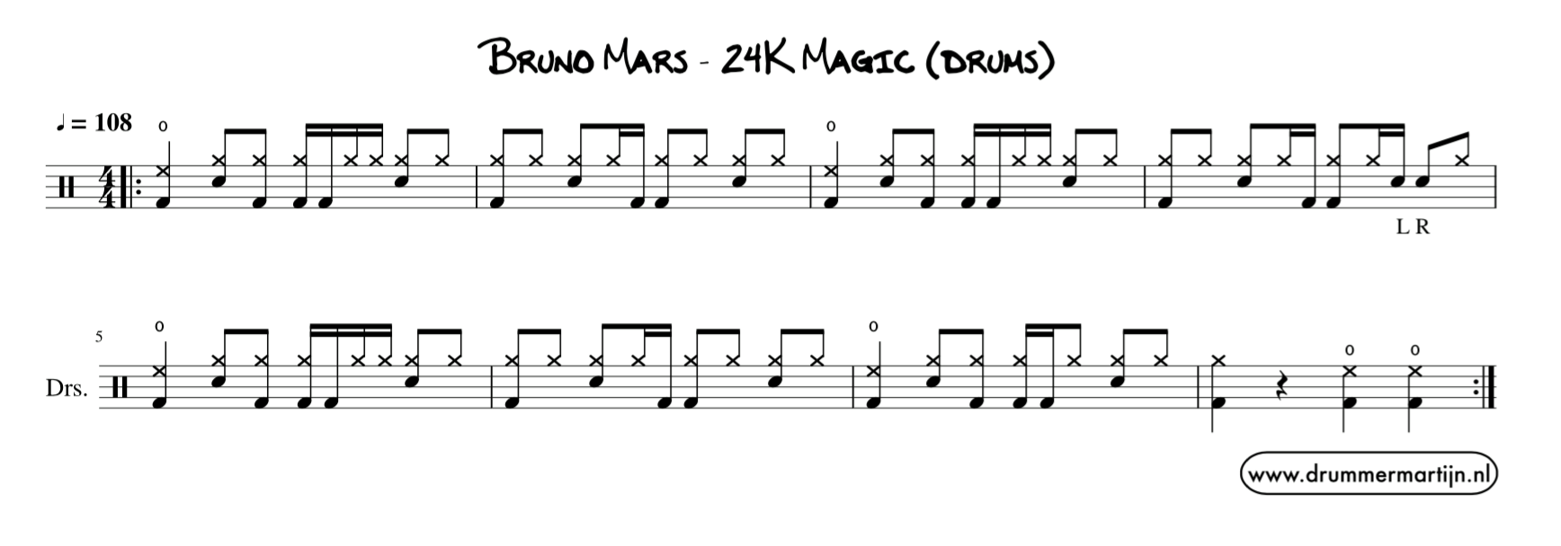 Bruno Mars – 24k Magic – transcribed by DrummerMartijn