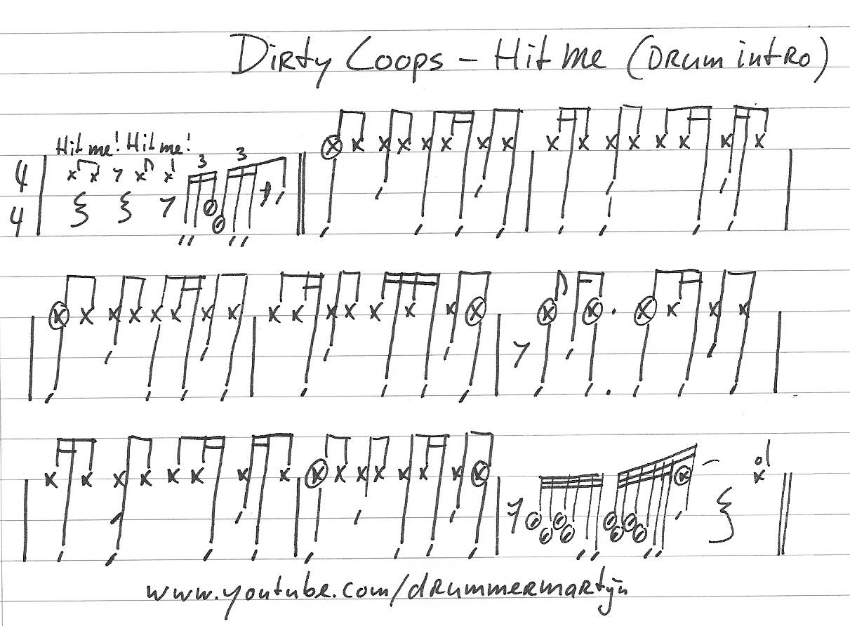 Dirty Loops – Hit Me (drum intro) as transcribed by DrummerMartijn
