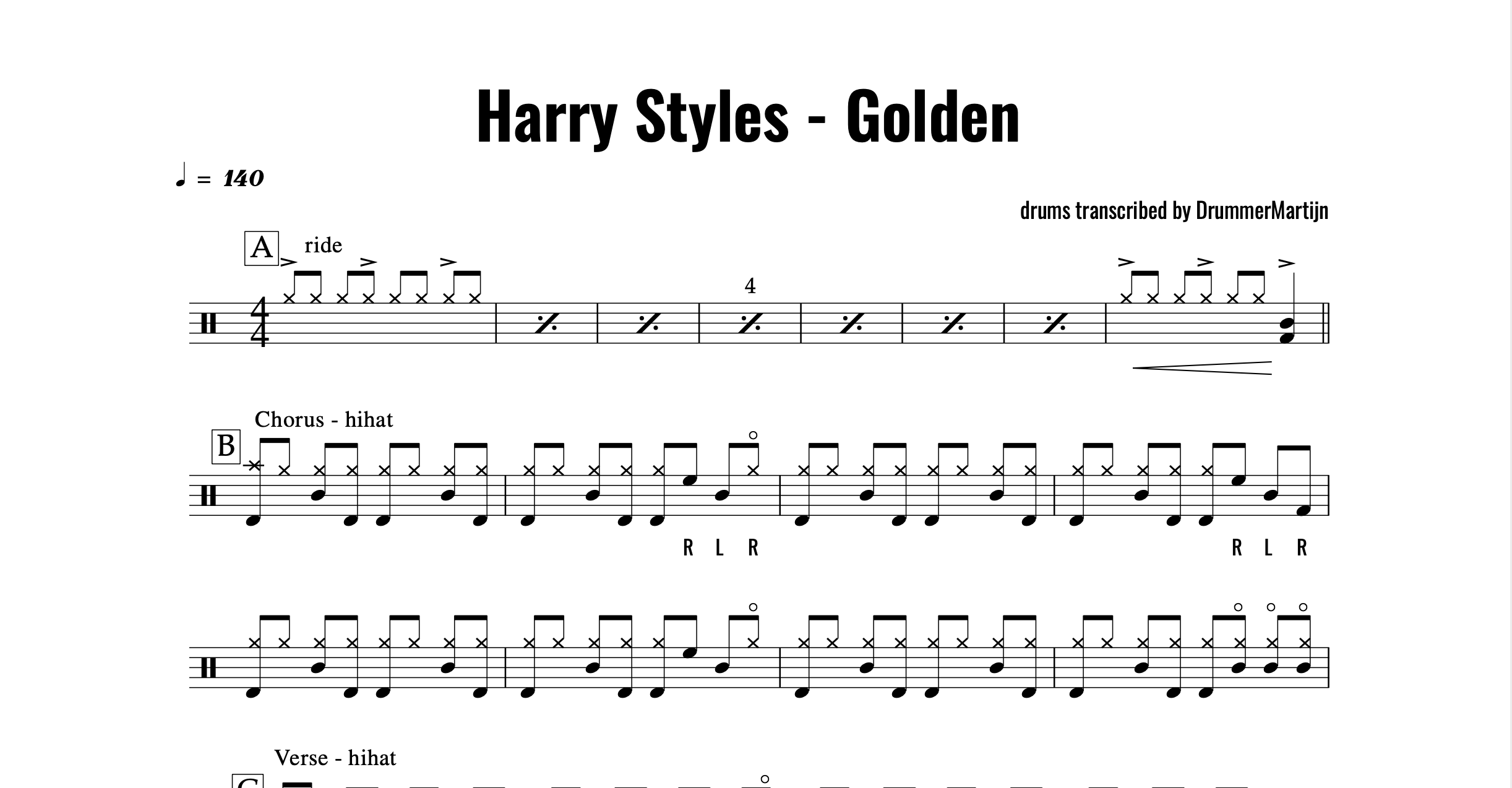Harry Styles – Golden – transcribed by DrummerMartijn