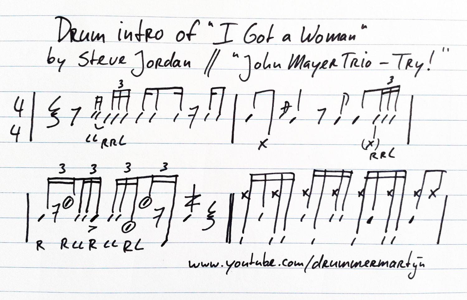 John Mayer Trio – I Got a Woman (live) – Drum Intro Steve Jordan – as transcribed by DrummerMartijn