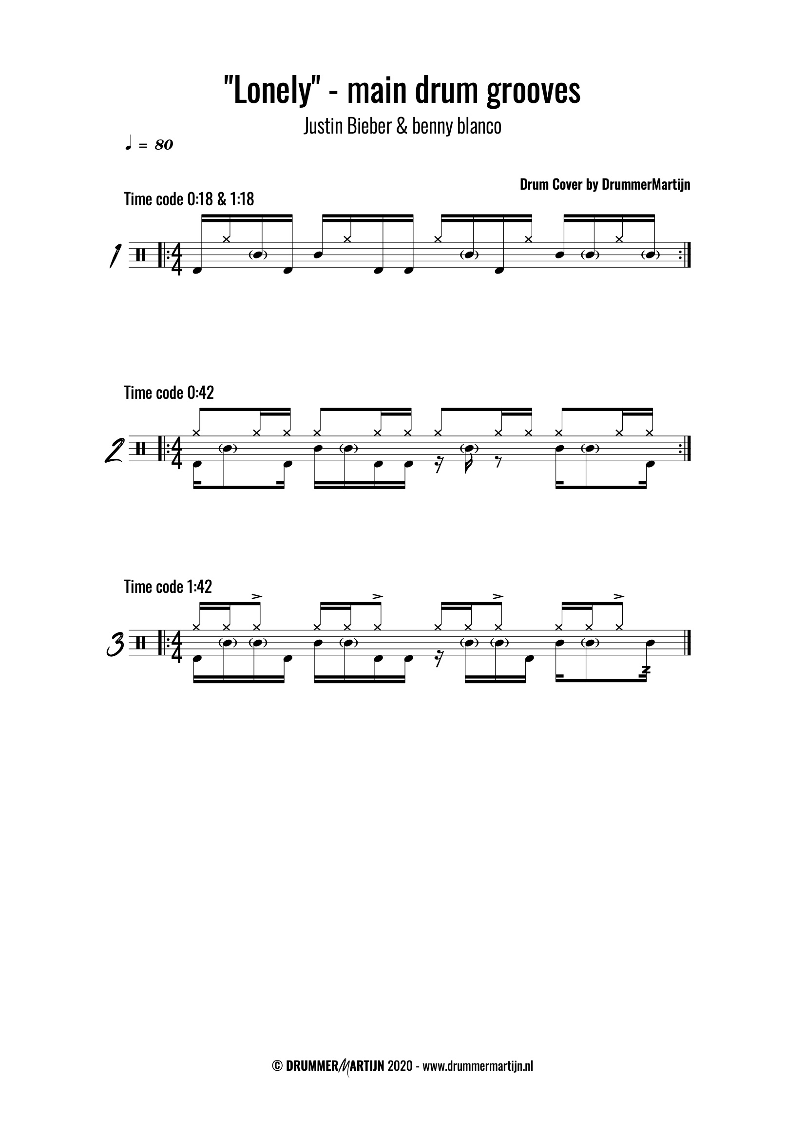 Download a FREE pdf file of the main drum grooves I’m playing in my drum cover & re-arrangement/re-harmonization of ‘Lonely’ by Justin Bieber & benny blanco. Watch video below!